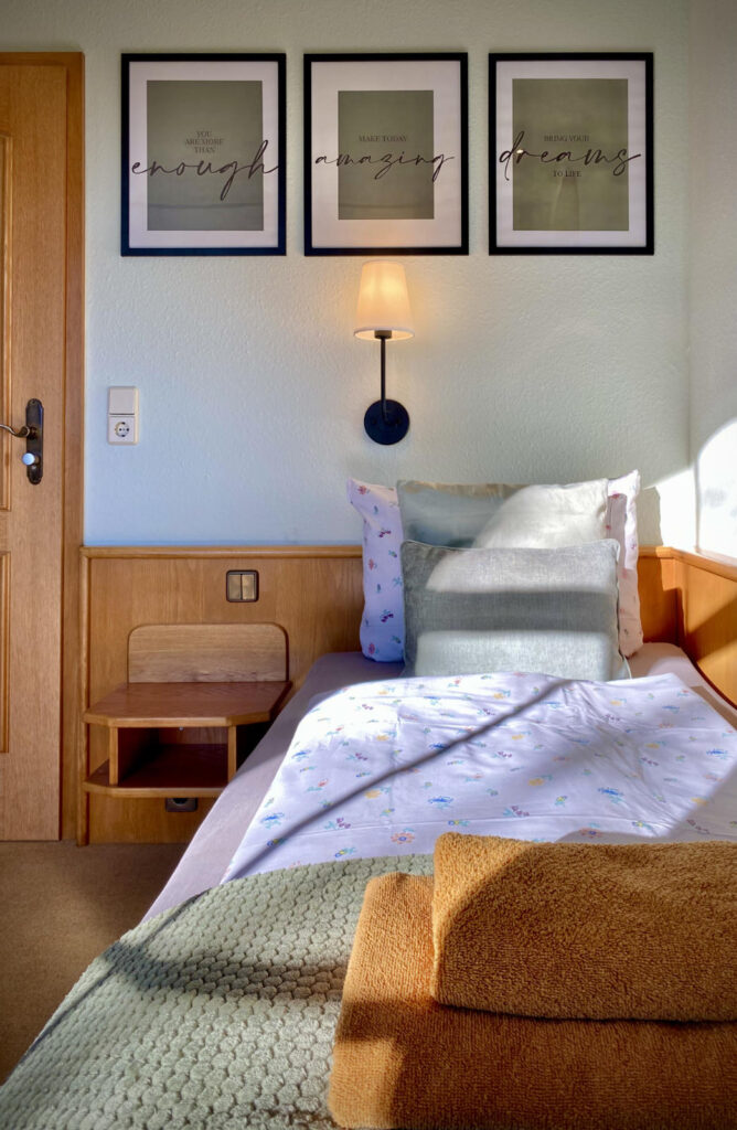 Auch außerhalb unserer sonstigen Angebote können Übernachtungen gebucht werden. Das Idyll durch die uneinsehbare Lage und die Natur ergeben ein Gefühl der Zurückgezogenheit, des kurzen Abtauchens. Wohltuende Zeitlosigkeit kann sich einstellen. Weite, Ruhe, die Individualität der Gäste-Villa mit nur 10 Zimmern und somit erlesener Kontakt mit anderen Menschen lässt eine Atmosphäre des Aufgehobenseins zu – »Es ist wie ein Zuhause, wie eine kleine Oase.« (häufiges Gästezitat).
